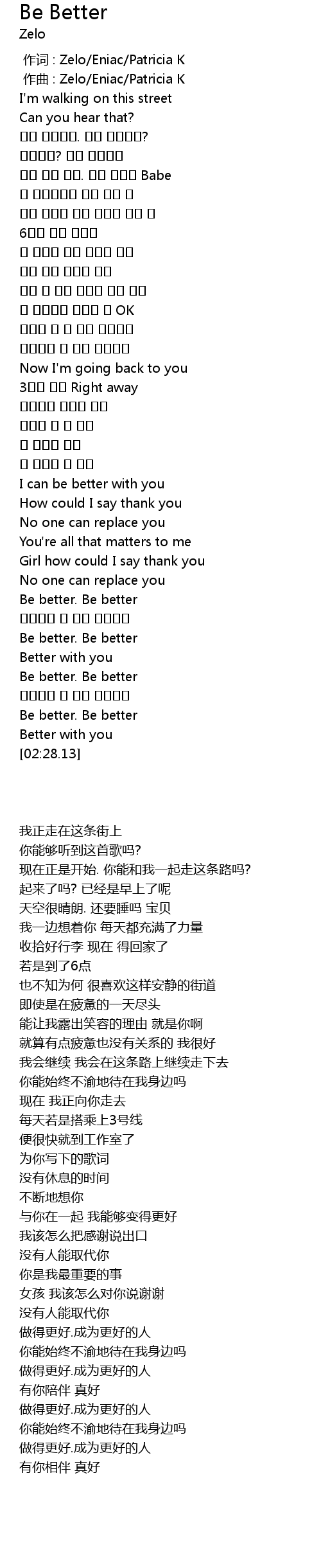 | [00:00.00] | 作词 : Zelo/Eniac/Patricia K |