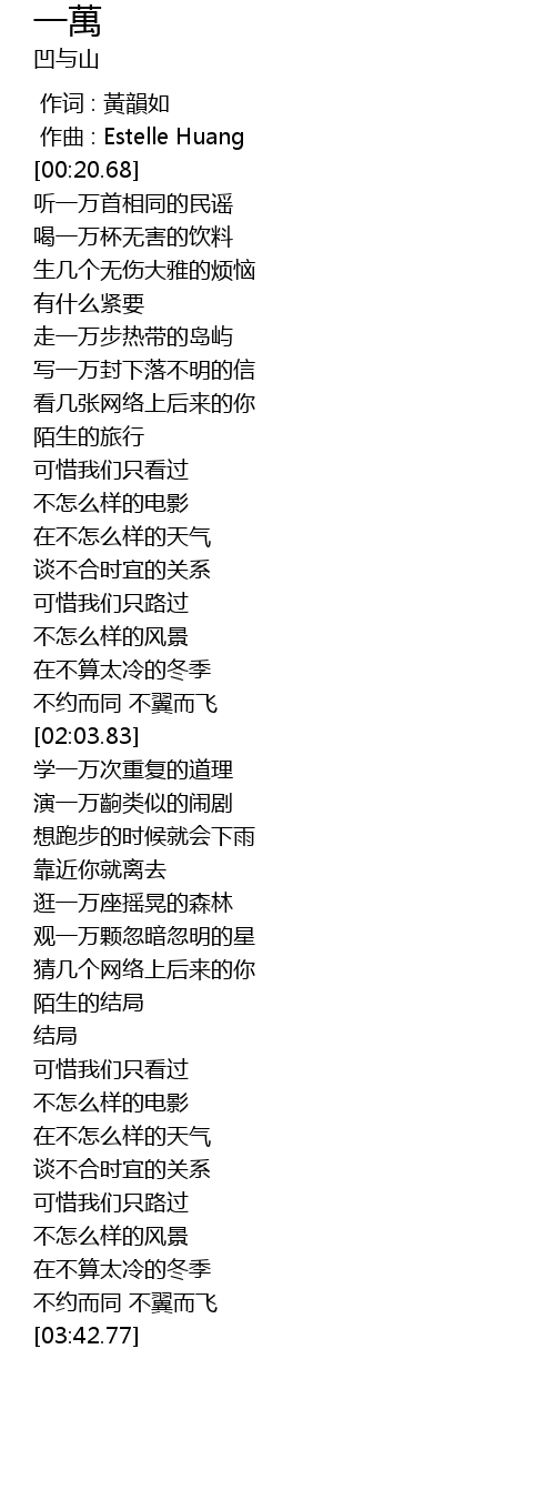 | [00:21.89] | tīng yī wàn shǒu xiàng tóng de mín yáo |