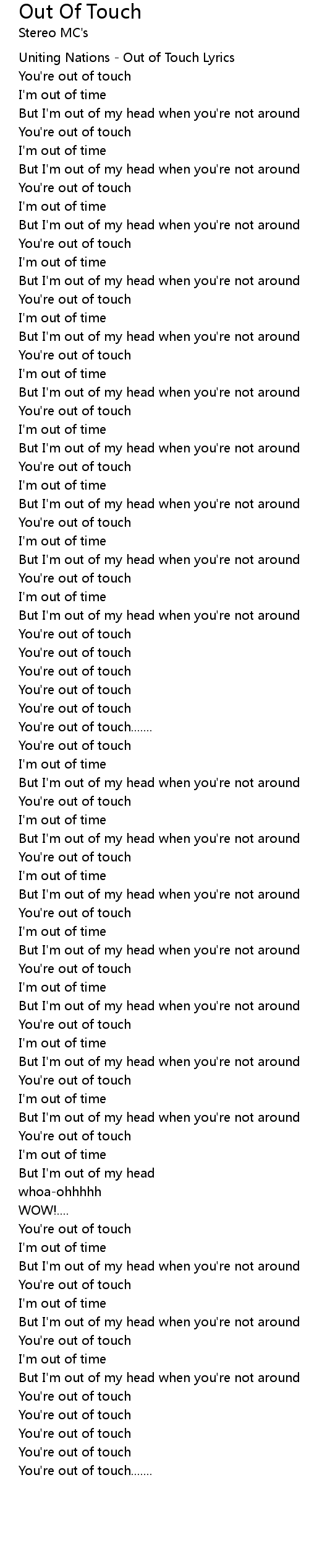 Uniting Nations - Out of Touch Lyrics |