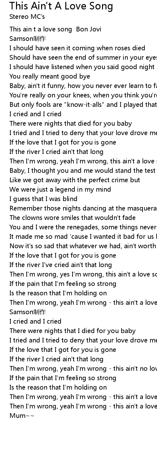 | [03:50.58] | Then I'm wrong, yeah I'm wrong - this ain't a love song |