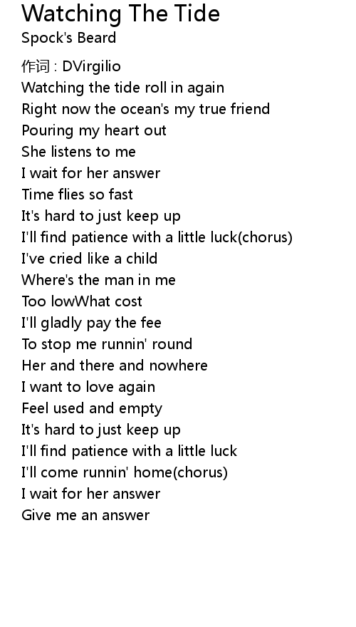 | Song | Watching The Tide |