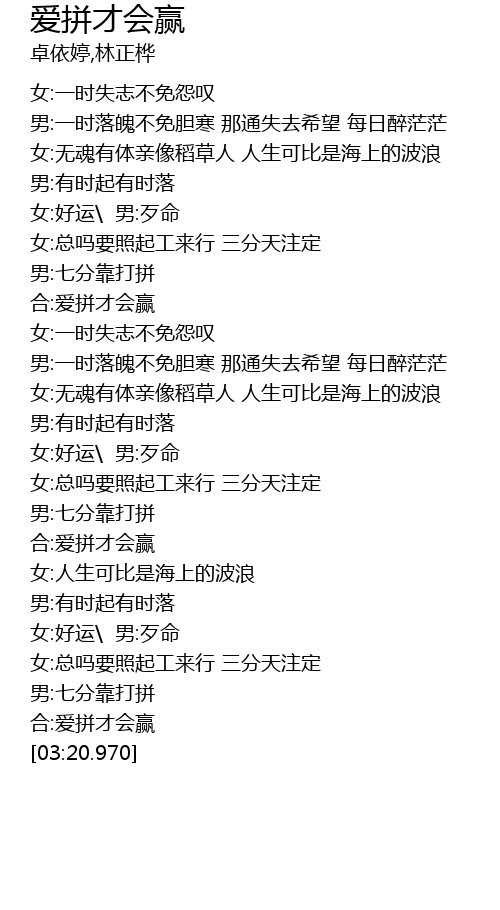 | [03:13.190] | 合:爱拼才会赢 |