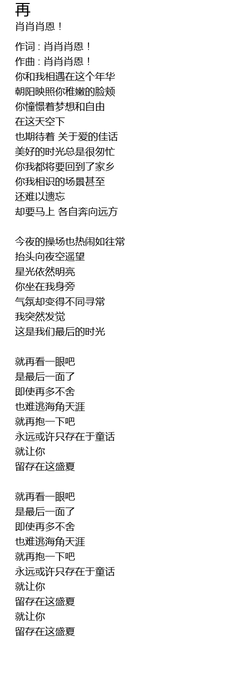 | 作词 : 肖肖肖恩! | |