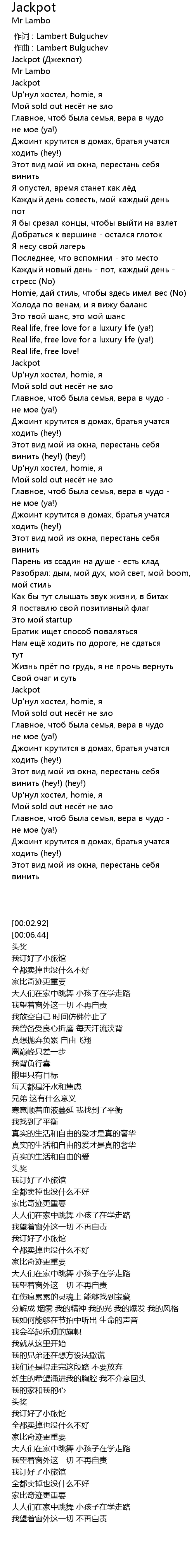 [02:23.21] Главное, чтоб была семья, вера в чудо - не мое (ya!)