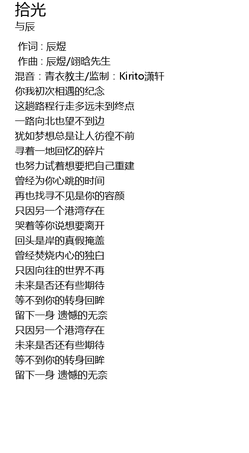 | [00:38.264] | 寻着一地回忆的碎片 |