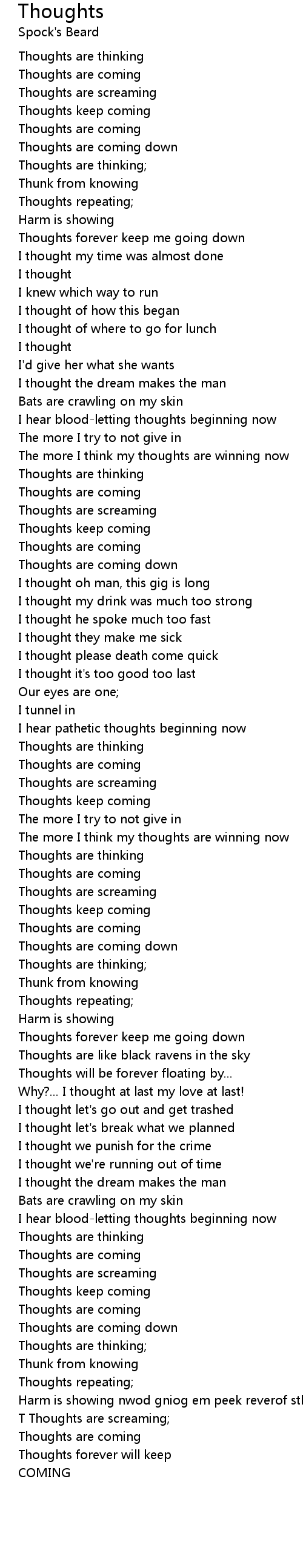 Thoughts repeating; |