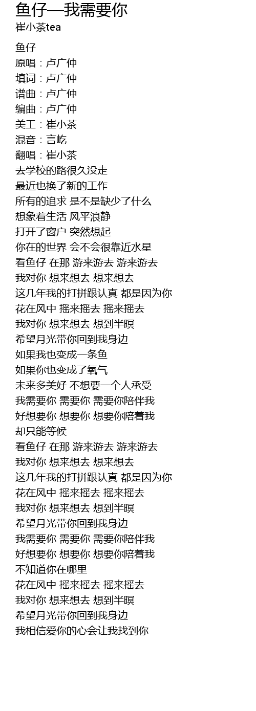 | [03:31.673] | 我需要你 需要你 需要你陪伴我 |