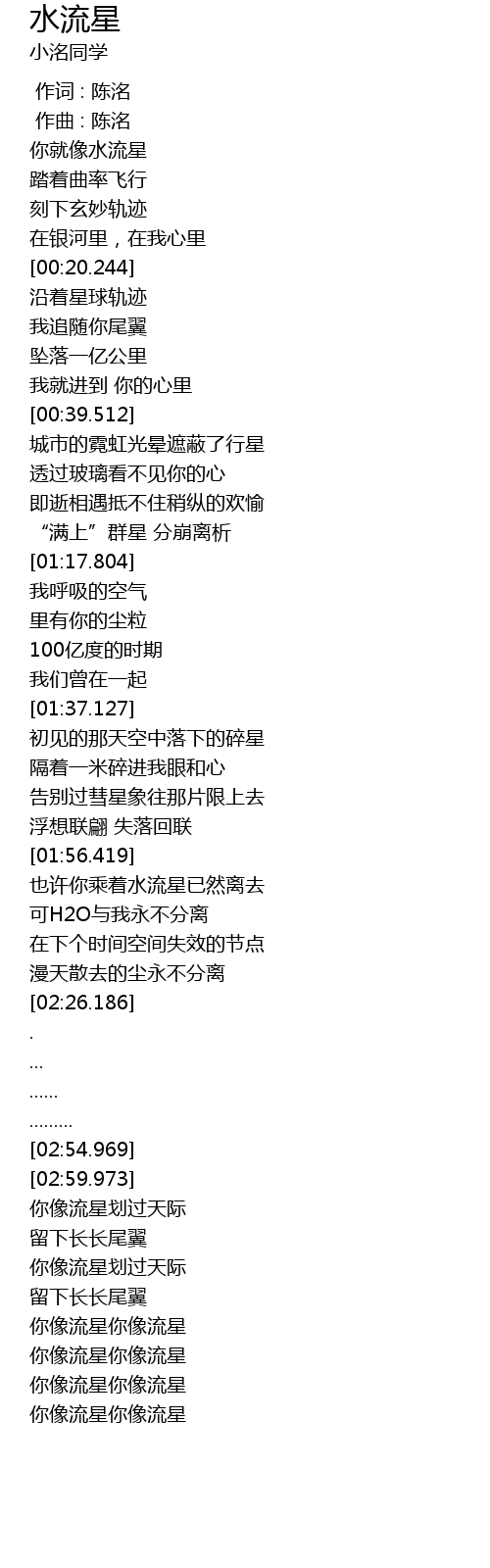 | [00:00.972] | nǐ jiù xiàng shuǐ liú xīng |