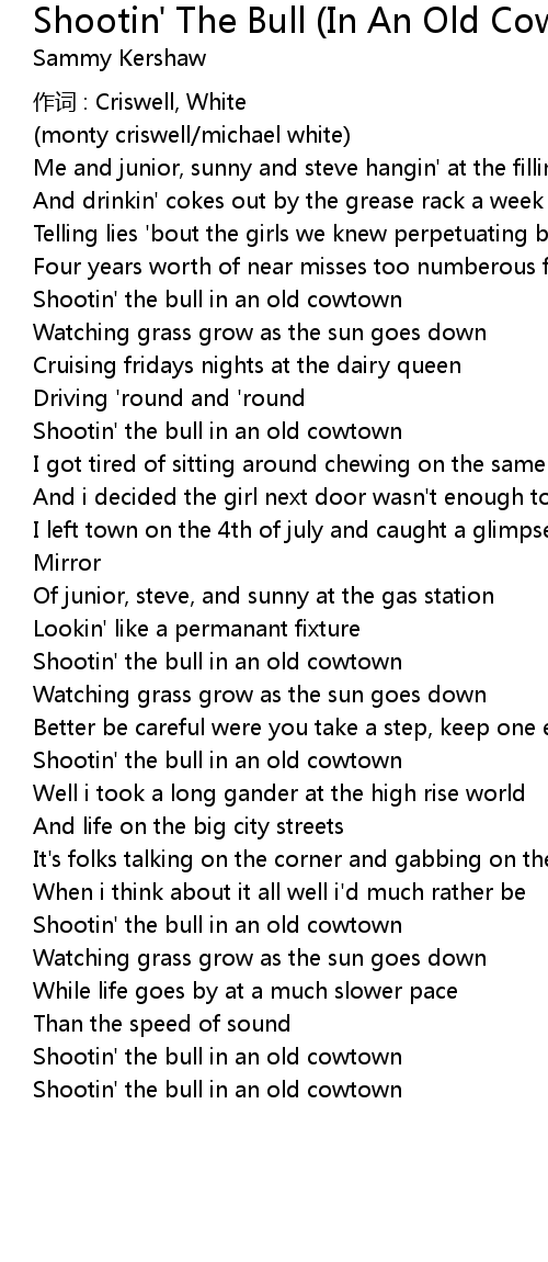 | Song | Shootin' The Bull (In An Old Cowtown) |