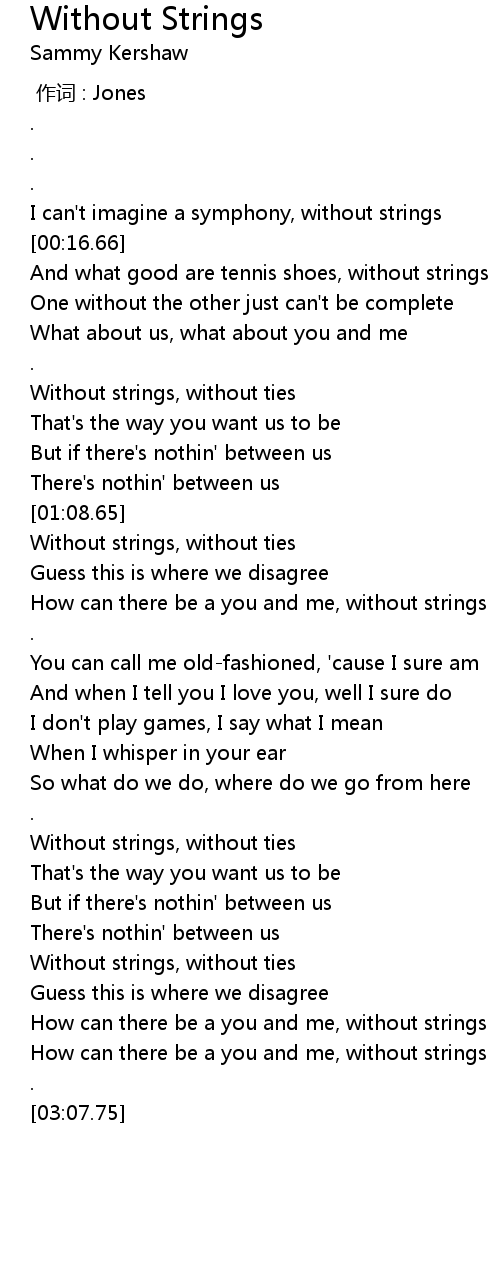 | [02:59.38] | How can there be a you and me, without strings |