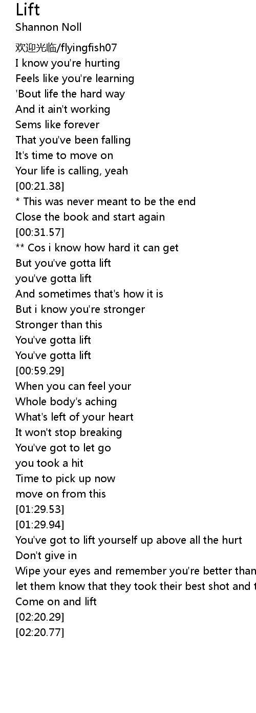 | [00:51.30] | You've gotta lift |