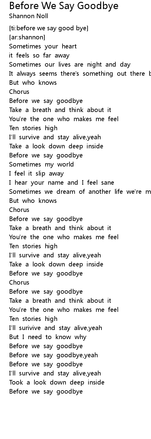 Before we say goodbye |