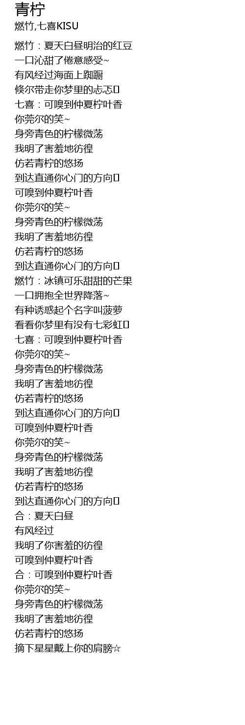 | [02:45.724] | 合:可嗅到仲夏柠叶香 |