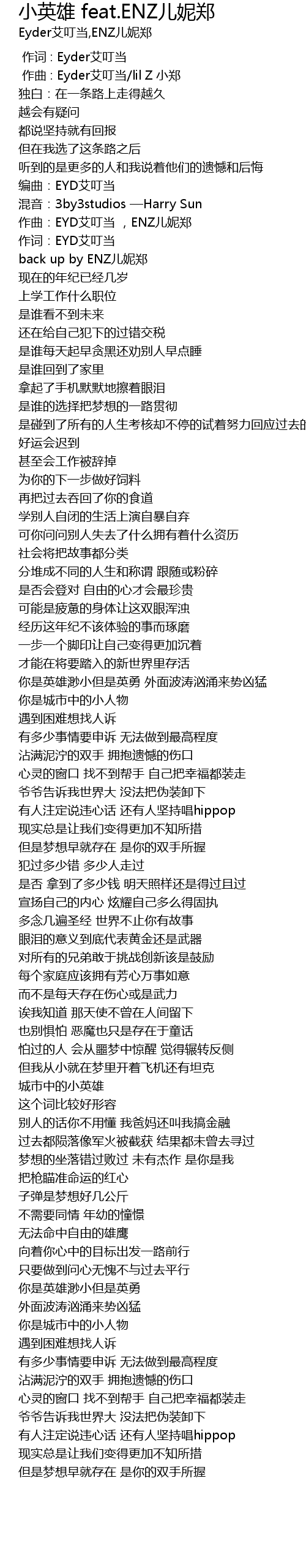 | [00:01.000] | zuo qu : Eyder ai ding dang lil Z xiao zheng |