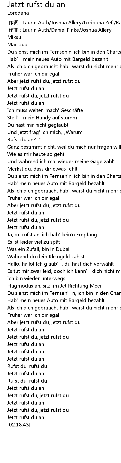 | [01:43.19] | Jetzt rufst du, jetzt rufst du |