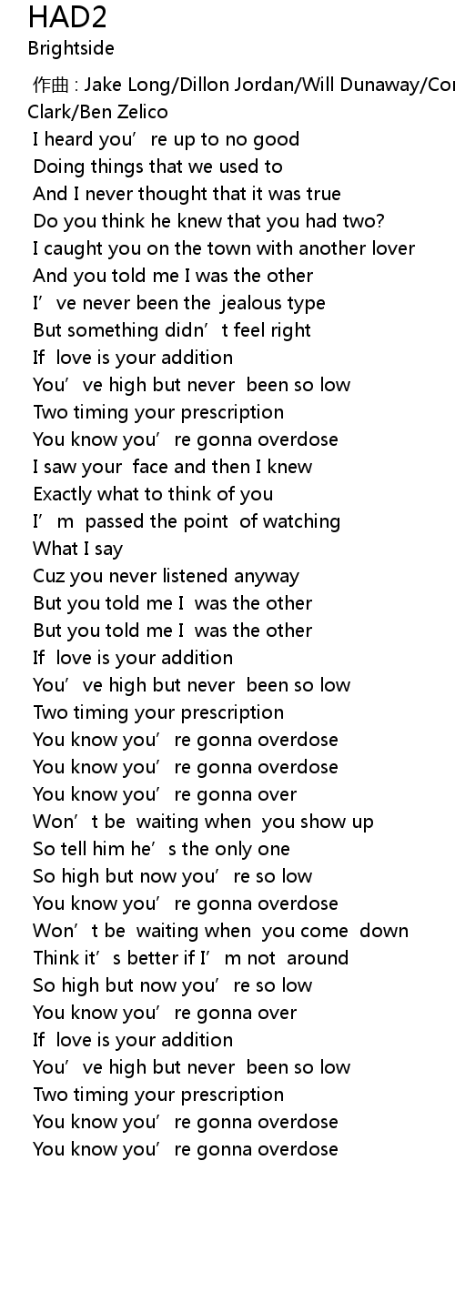 | [03:16.109] | You know you' re gonna overdose |