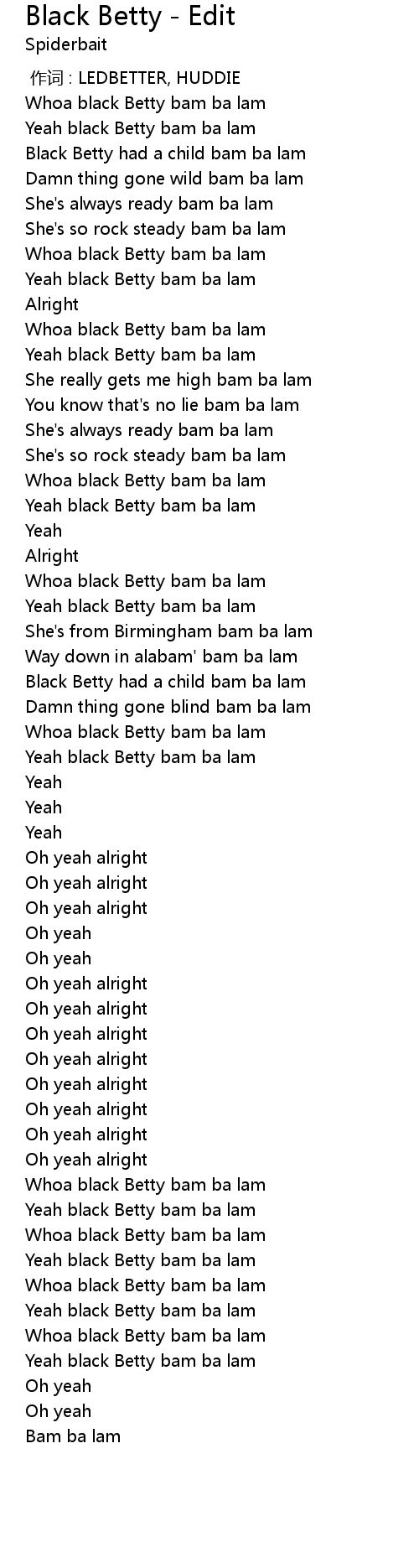 | [01:15.23] | Yeah black Betty bam ba lam |