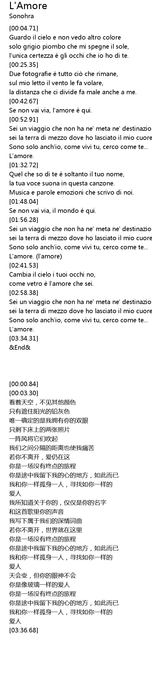| [00:45.11] | Se non vai via, l' amore è qui. |