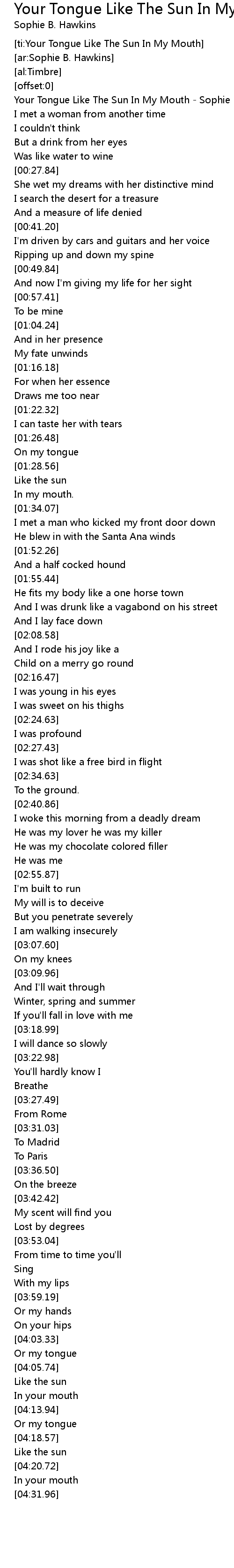 [ti:Your Tongue Like The Sun In My Mouth] |