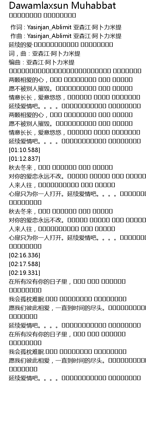 | [02:48.588] | 延续爱情吧。。。。داۋاملاشسۇن مۇھەببەت |