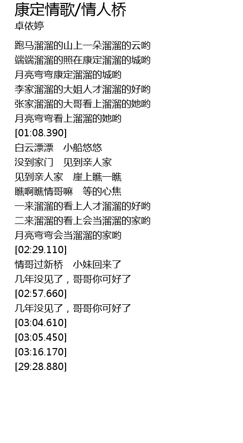 | [00:35.980] | 月亮弯弯康定溜溜的城哟 |