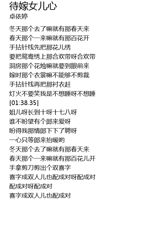 | [01:44.31] | 谁不盼望有个郎来爱呀 |