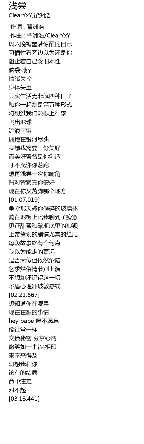 | [00:00.000] | 作词 : 翟洲浩 |