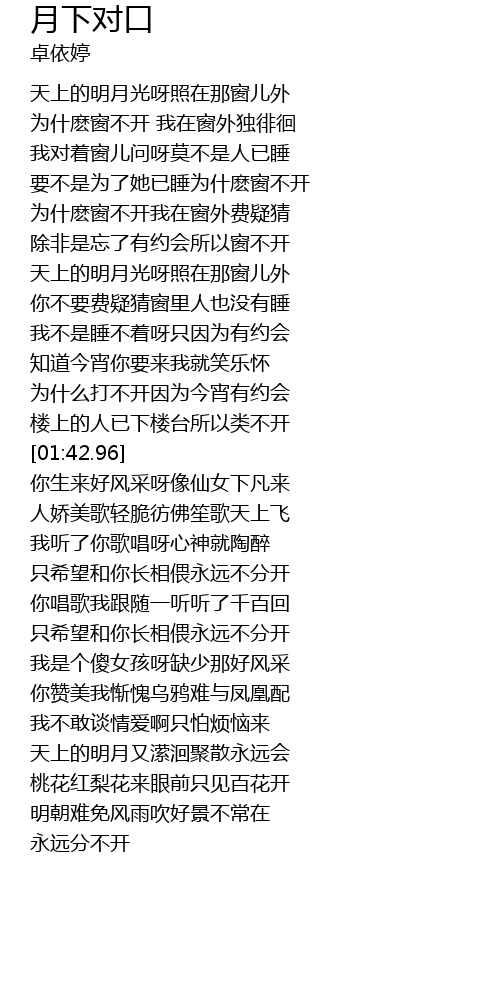 | [00:43.28] | 为什麽窗不开我在窗外费疑猜 |
