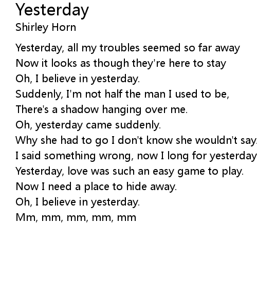 | Song | Yesterday |