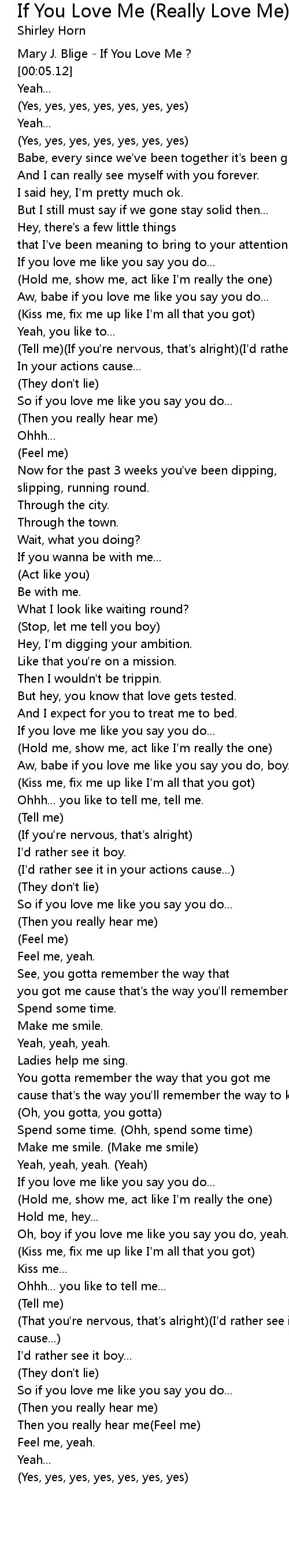 | [00:01.15] | Mary J. Blige If You Love Me? |