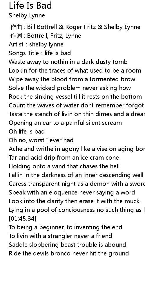 | [00:00.00] | 作曲 : Bill Bottrell & Roger Fritz & Shelby Lynne |
