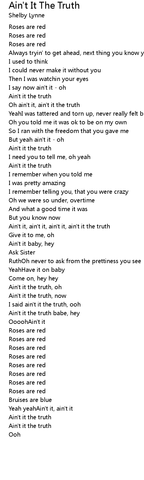 Ain't it, ain't it, ain't it, ain't it the truth |