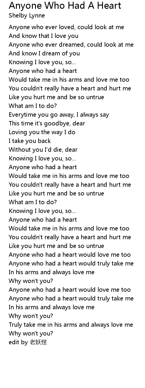 | [02:35.77] | Anyone who had a heart would truly take me |