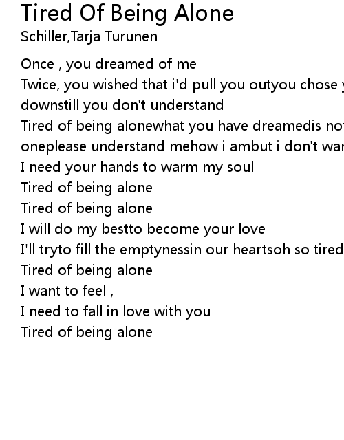 | Tired of being alonewhat you have dreamedis not what i amso farlet me be the oneplease understand mehow i ambut i don't want , to walk alone | |