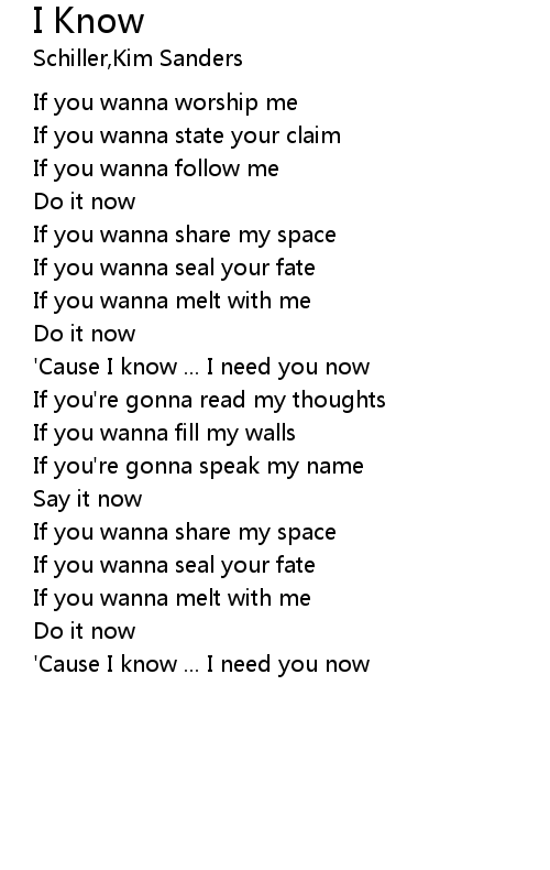 | 'Cause I know ... I need you now | |