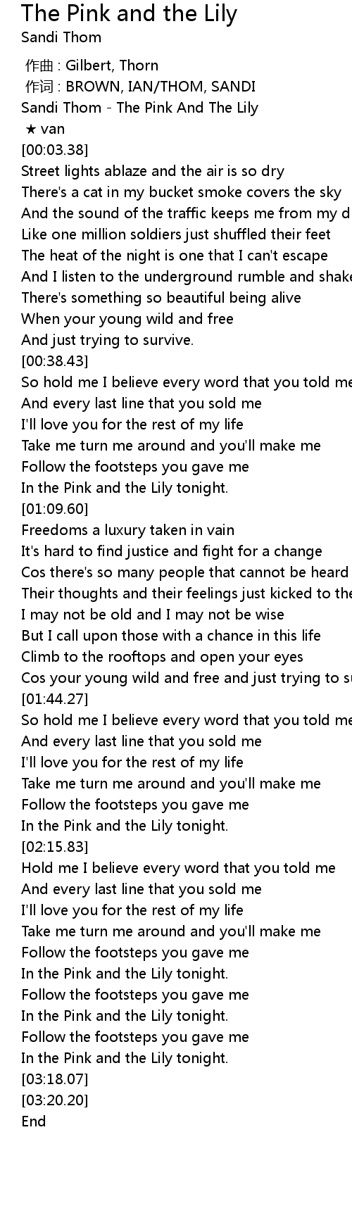 | [00:00.00] | Sandi Thom - The Pink And The Lily |