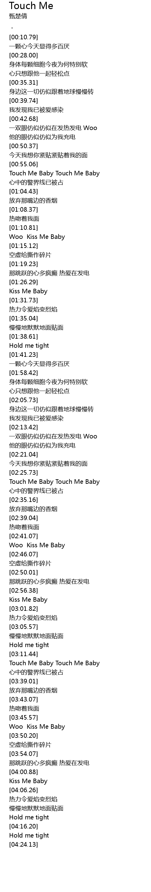 | [02:29.48] | Touch Me Baby Touch Me Baby |