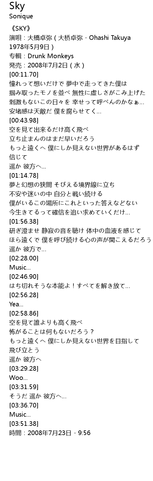 | [00:04.77] | 演唄:大橋卓弥(大桥卓弥 - Ohashi Takuya 1978年5月9日) |