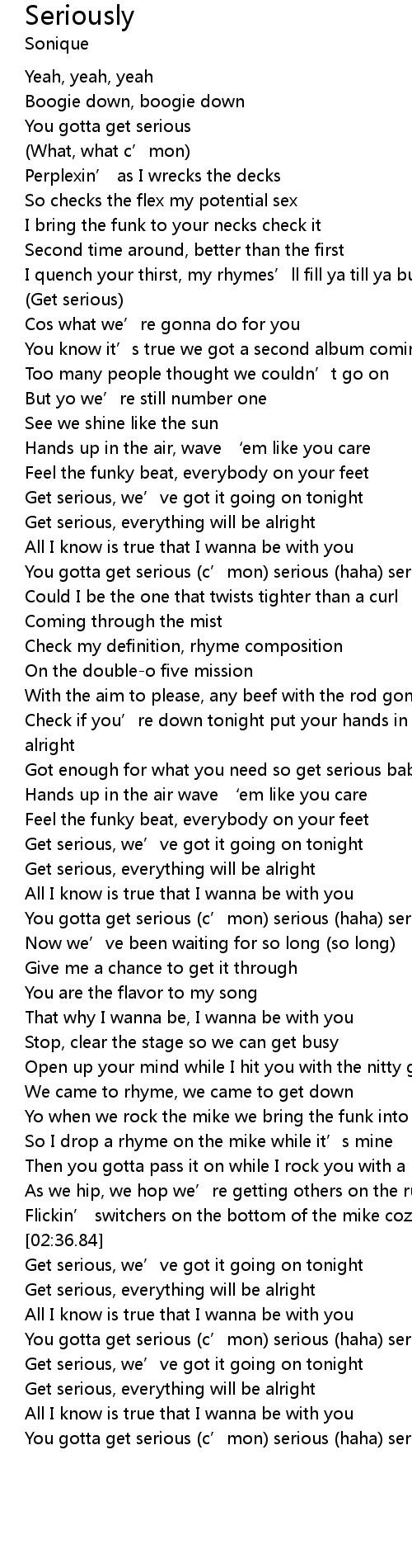 | [02:55.68] | You gotta get serious (c’mon) serious (haha) serious |