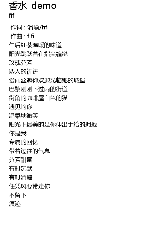 | [00:00.000] | 作词 : 潘瑜/fifi |
