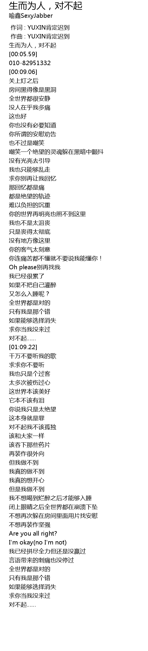 | [00:01.20] | shēng ér wéi rén, duì bù qǐ |