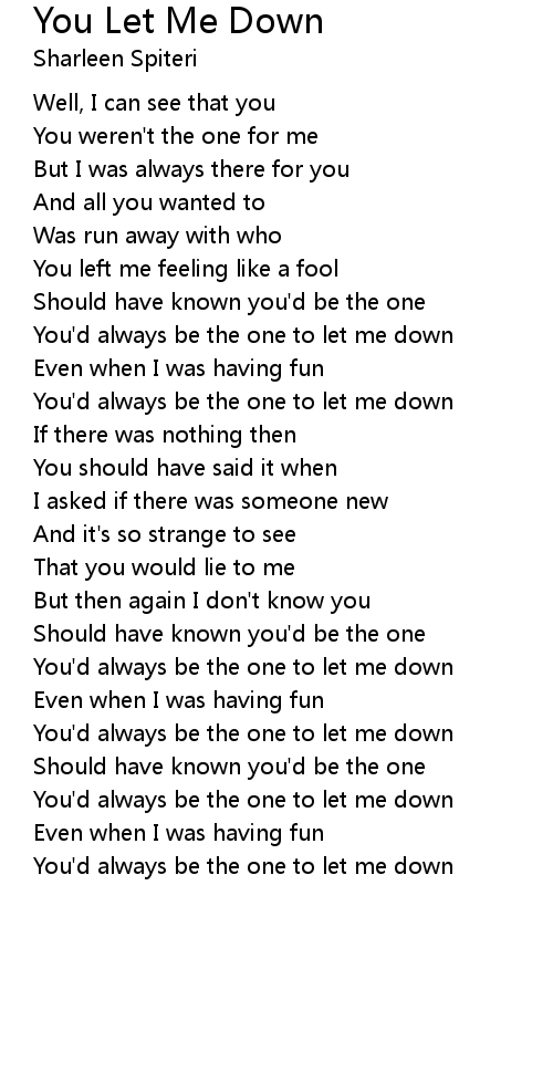 You'd always be the one to let me down |