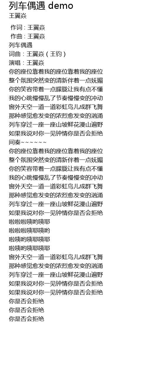 | [00:14.74] | 你的座位靠着我的座位靠着我的座位 |
