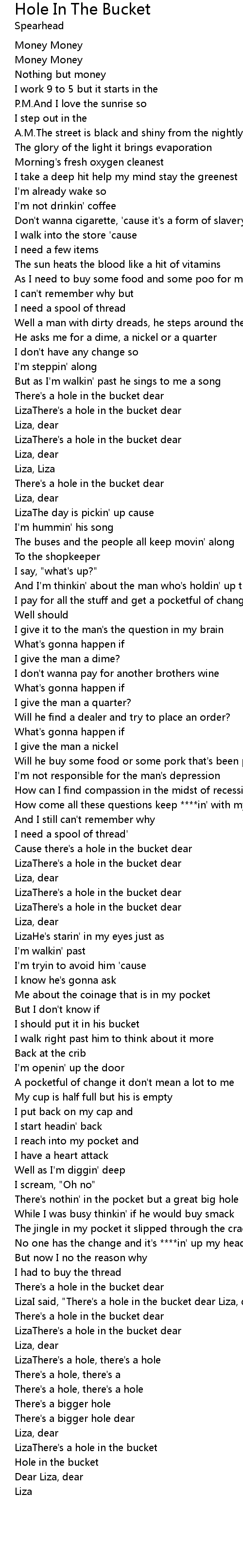 | LizaThere's a hole in the bucket dear | |