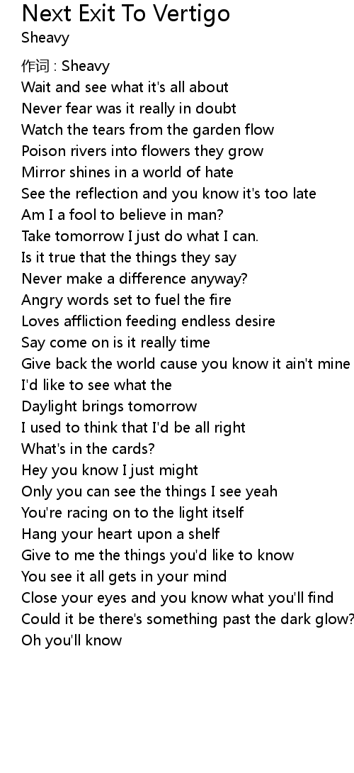 | Song | Next Exit To Vertigo |