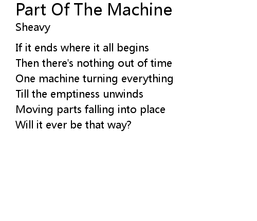 | Song | Part Of The Machine |