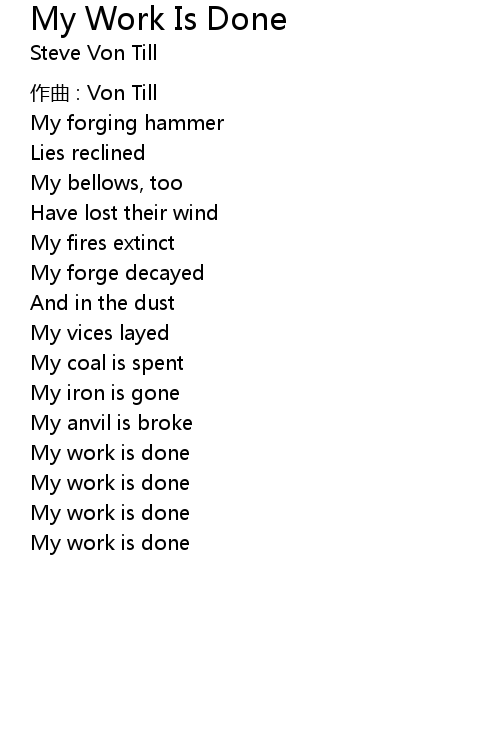 | Song | My Work Is Done |