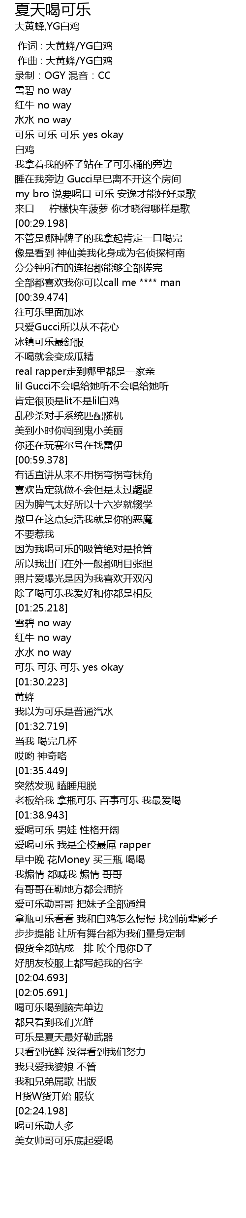 | [02:11.939] | 可乐是夏天最好勒武器 |