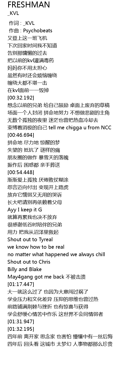 | [01:16.693] | May4gang got me back 不被击溃 |