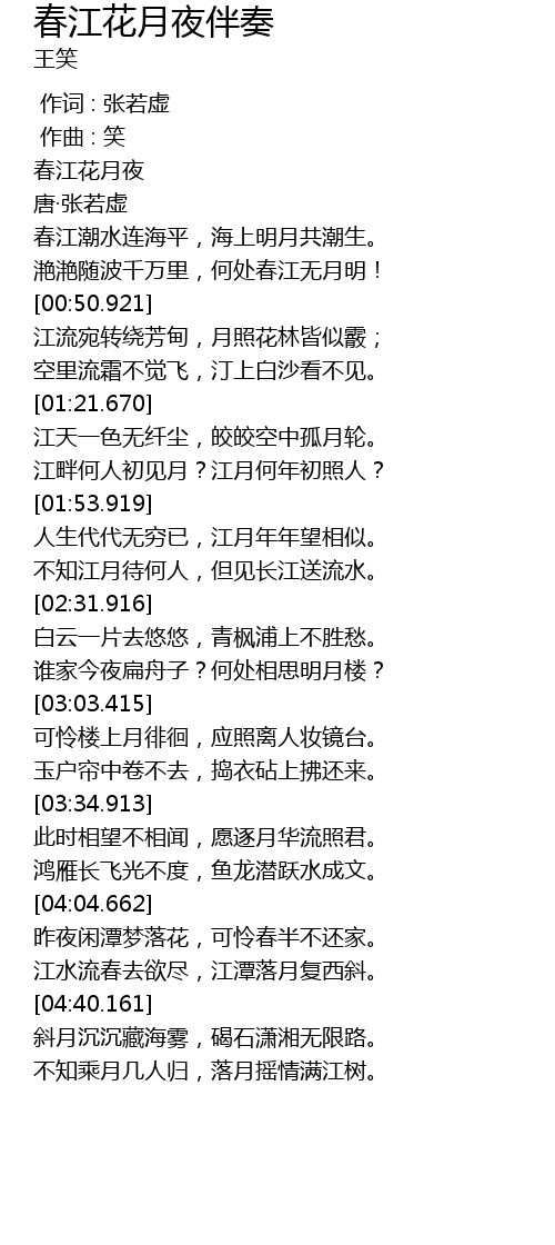 | [00:04.423] | chūn jiāng huā yuè yè |